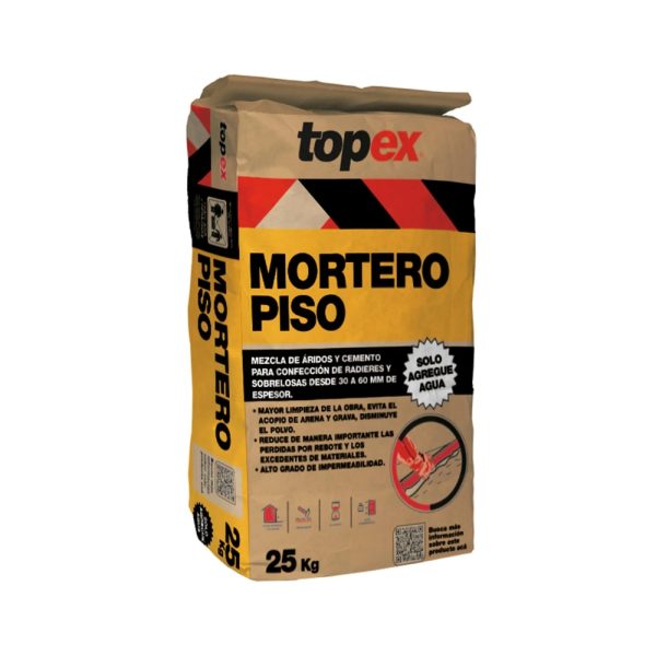 El Topex Piso es la solución ideal para la construcción de radieres y sobrelozas, ya que es una mezcla de áridos y cemento en polvo que te permite simplificar la obra. Cada saco contiene 25 kg de producto, lo que te evita tener que comprar arena y grava por separado, además de reducir el polvo y las pérdidas de material. ¡Con Topex Piso, tu proyecto será más fácil y eficiente!